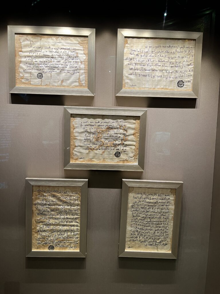 Also exhibited are a showcase of letters purported to have been written by the prophet Mohammed (PBUH). Sorry, I have to call BS on this one.