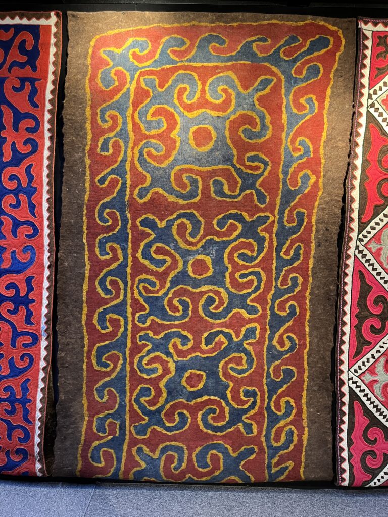 This is a Kyrgyz specialty – Ala Kiyiz carpets, with colourful patterns dyed into the felt with which they’re made. We’d love to bring one of these puppies home.