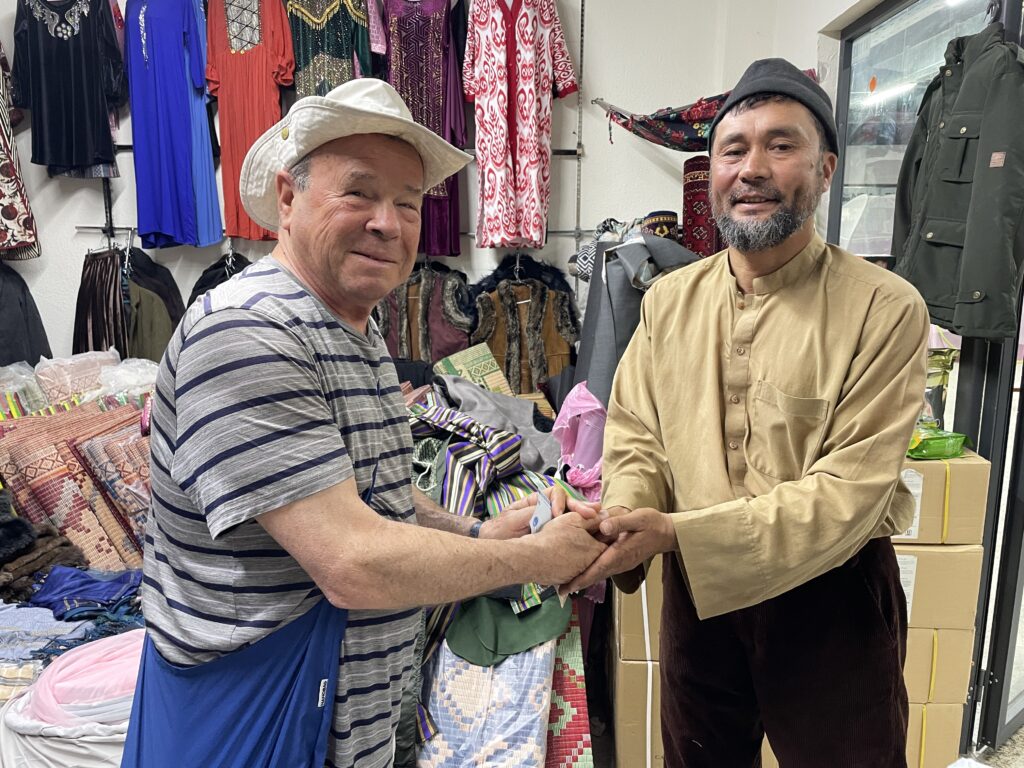 Here we seal the deal, Afghan style: I place the payment cash vertically between my hands and the seller places my hands between his.