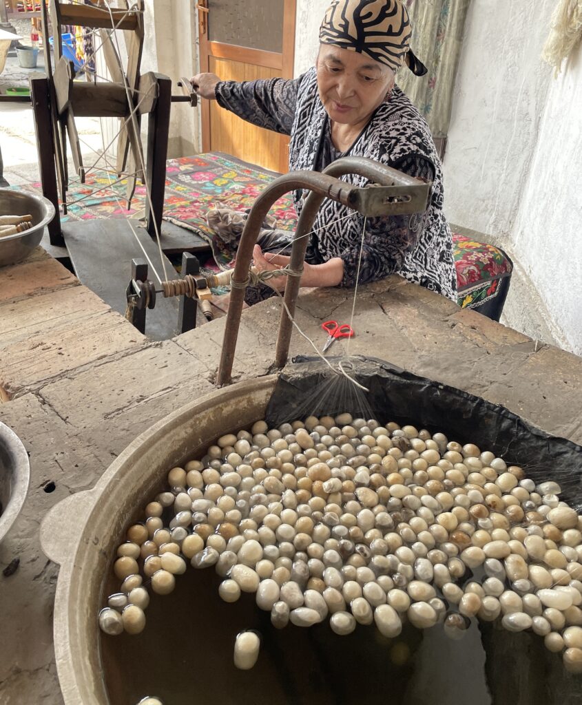 A white-knuckle Yandex ride takes us to Margilan, 76 KMs away, in record time. Wikipedia informs us: ‘Margilan has been renowned for its silk goods as far back as the 10th century.’