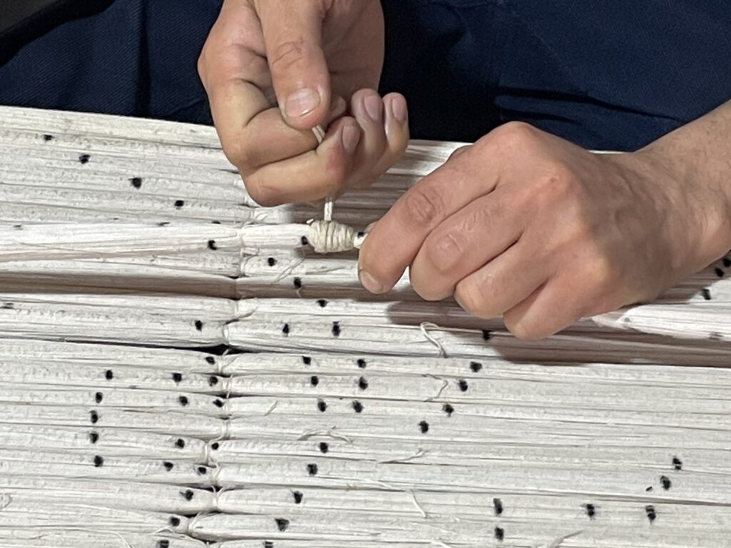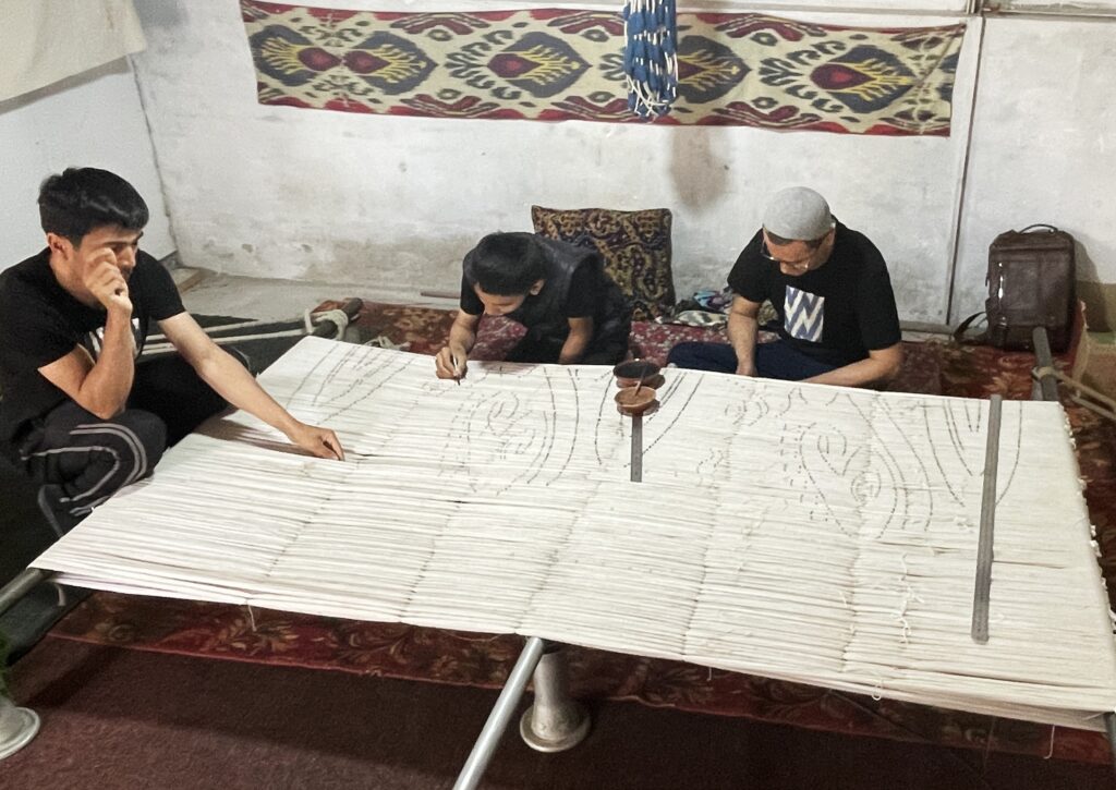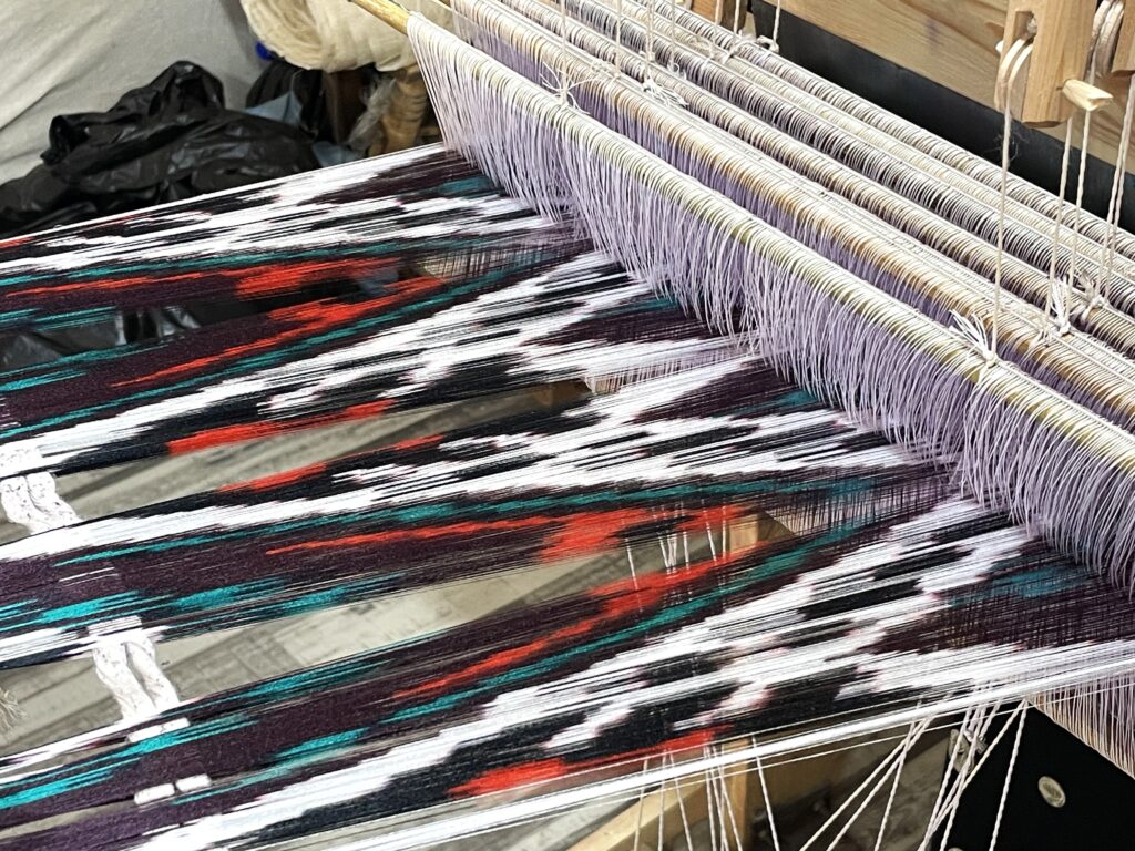 This silk is turned into textiles using the ikat dying process. The ikat process comes from Southeast Asia originally.