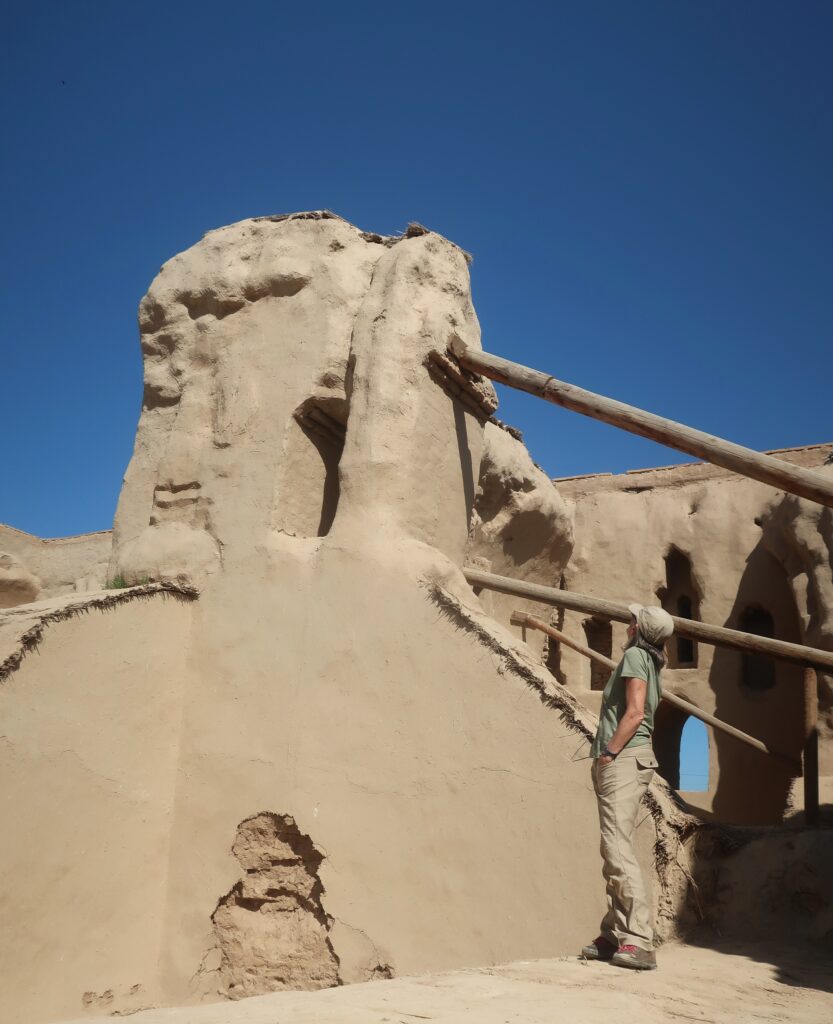 Nearby is Kara Tepe. This is a series of Buddhist caves. You can still see the remains of ancient wall paintings. (Mahsud peels some away to show us before we convince him to stop.)