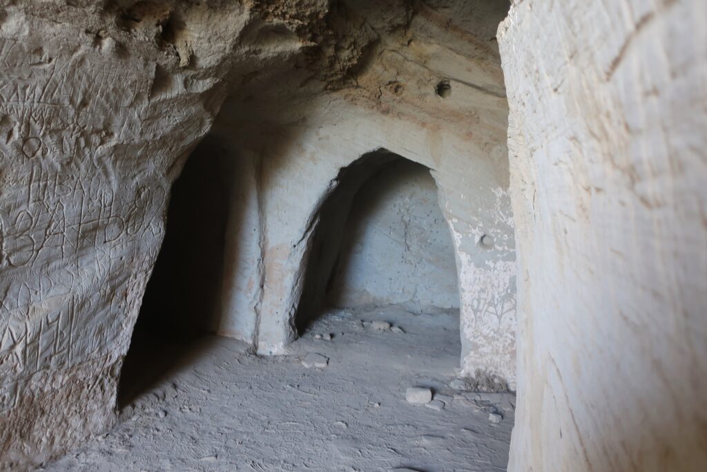 The caves were also visited by many bored Russian soldiers during the 1979-1989 Soviet-Afghan war. They left behind many inscriptions carved into the soft limestone.