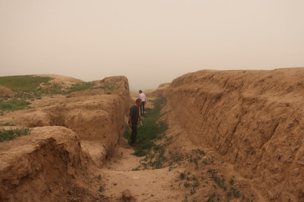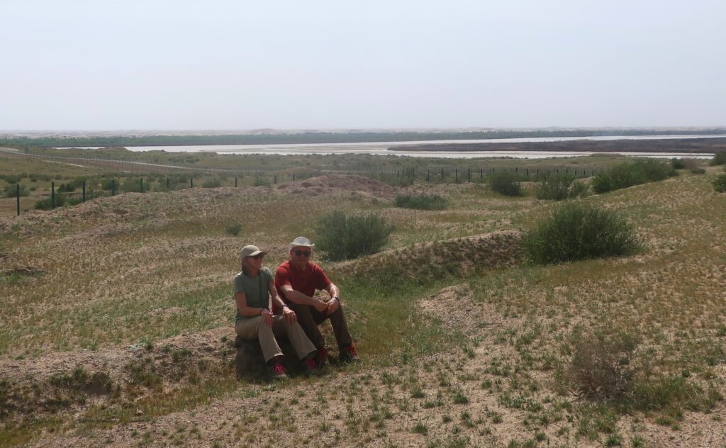 We take a break. In the background is the Amu Darya river – known as the Oxus River in classical times. On the other side is Afghanistan.